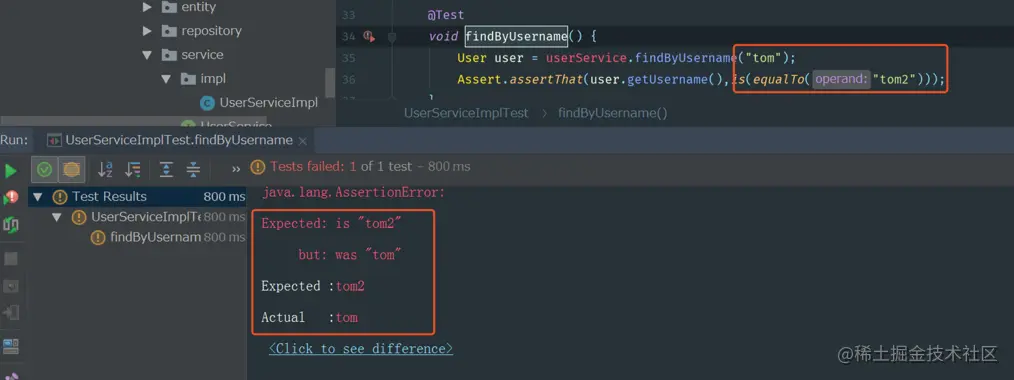 Assert.assertThat(user.getUsername(),is(equalTo("tom")));