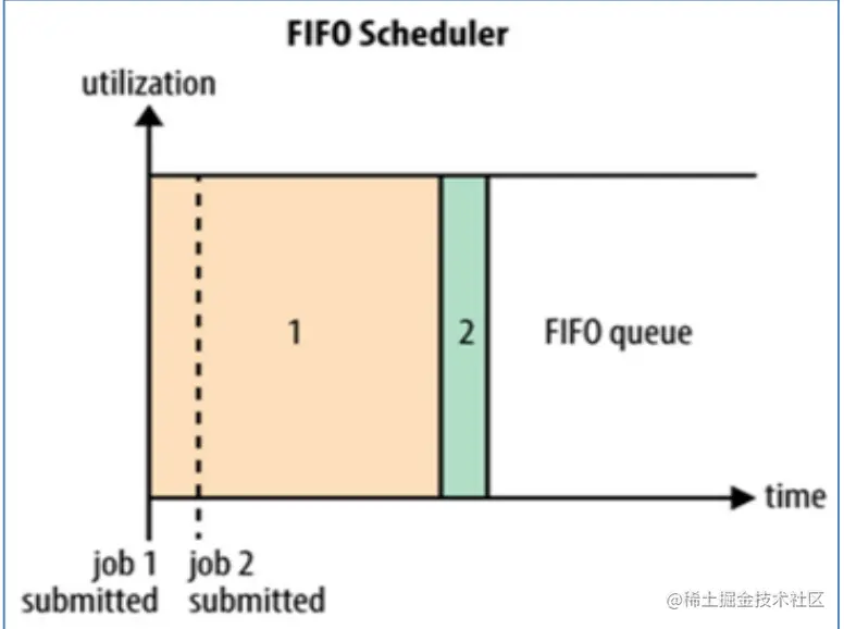 FIFO Scheduler是一个先进先出的思想,即先提交的应用先运行。调度工作不考虑优先级和范围,适用于负载较低的小规模集群。当使用大型共享集群时,它的效率较低且会导致一些问题。