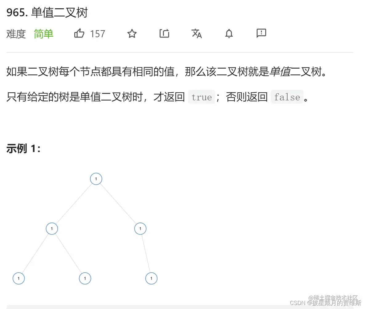 if(root->right && root->right->val != root->val)//如果右结点不为空,且右树结点的值不等于根的值,返回false