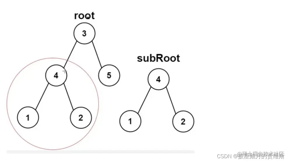 遍历左边的每个节点,做子树的根,跟右边的子树都比较一下isSameTree