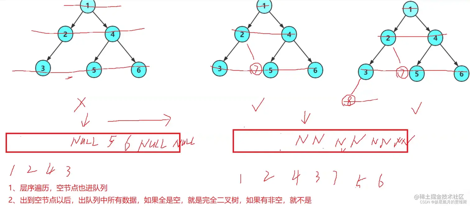 如果在遍历的中间过程中遇到空就说明不是完全二叉树。