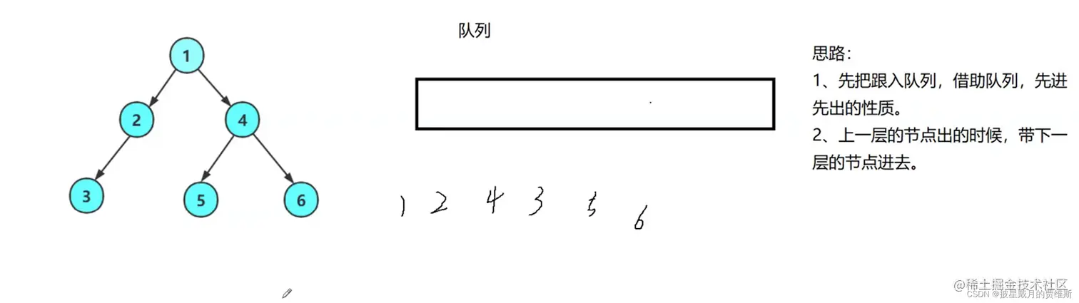 层序遍历与之前的三种遍历情况有所不同,层序遍历的实现依赖于队列,会比较麻烦一些。