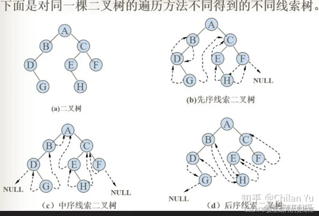 这四种遍历方式的基本顺序和在数组中存储的形式如下图所示:
