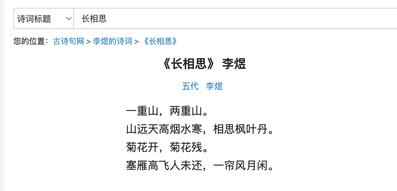 于是我对于ChatGPT所说的《长相思.其一》有了极大的好奇心,它到底长啥样呢?