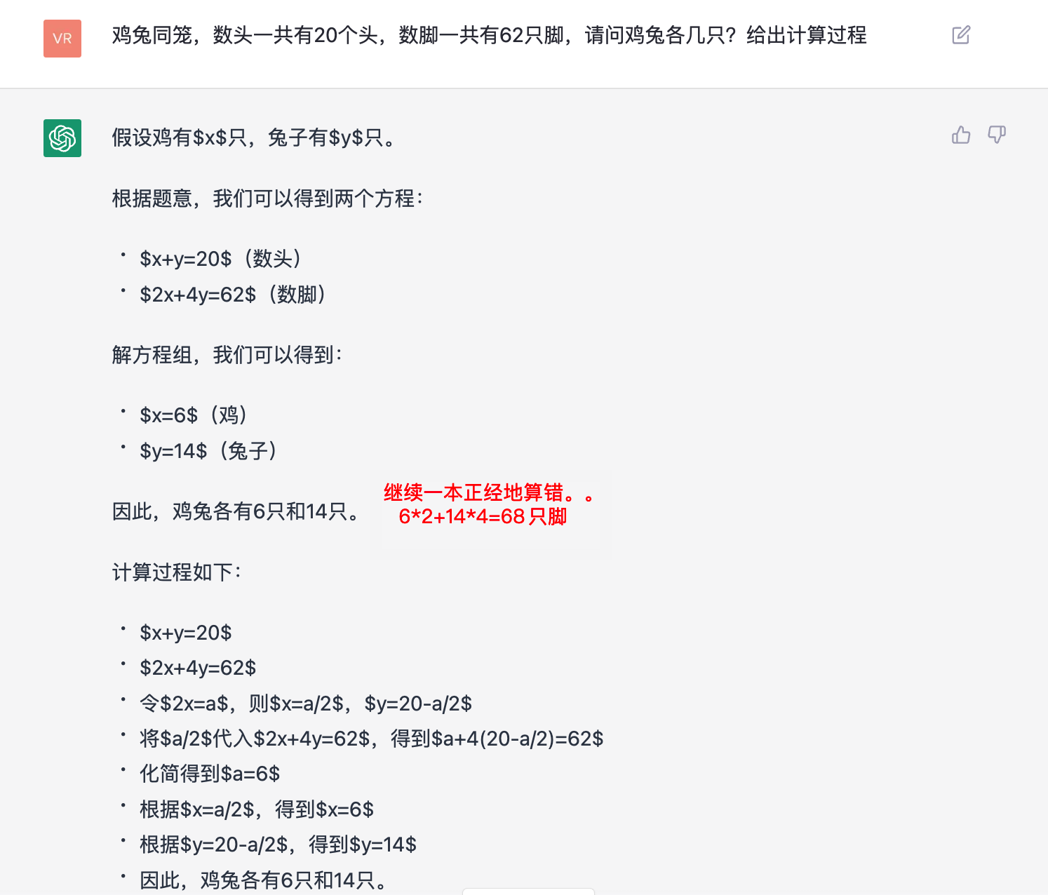 2.2.1、鸡兔同笼,一本正经地算错了。。
