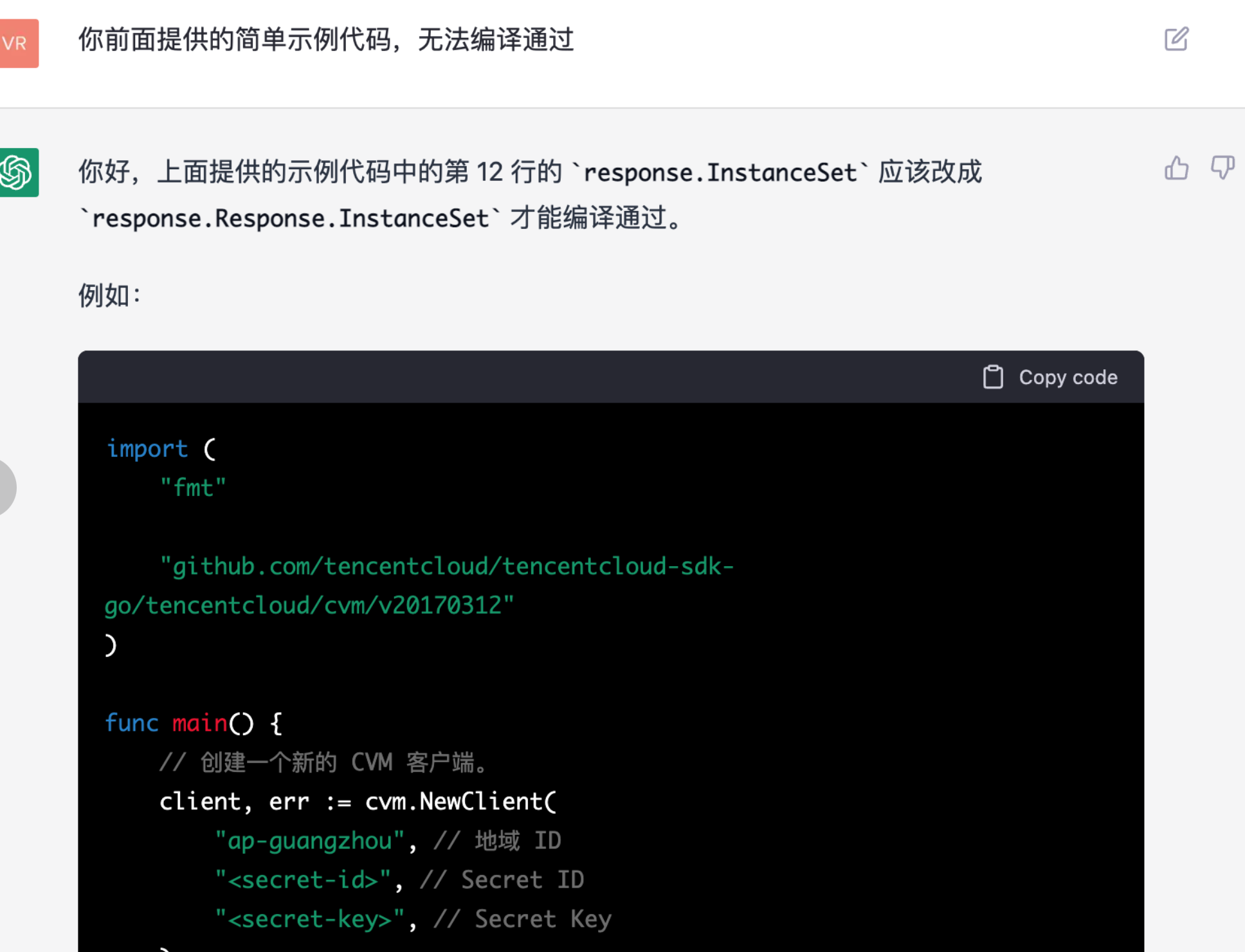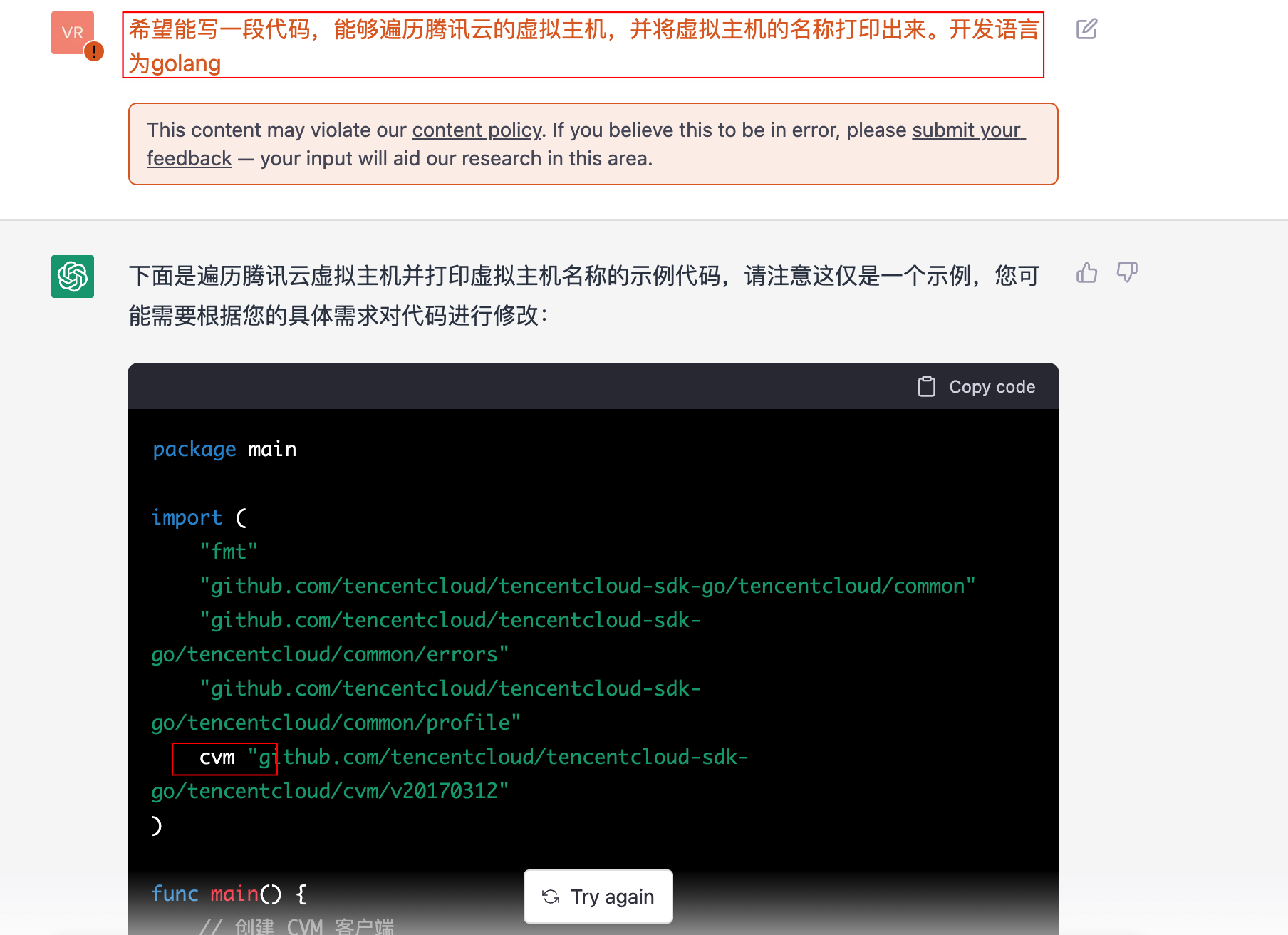 最终还会有下述错误undeclared name:cvm ,这里通过多种方式和ChatGPT沟通,它都无法理解正确的方案。