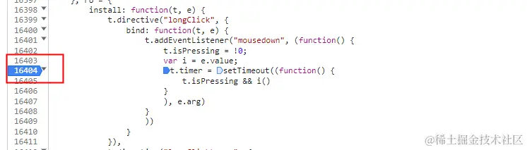 仔细观察代码,我们可以发现,其功能是基于vue进行开发的。这段代码逻辑很简单,在vue的install函数内,注册了一个名为longClick的指令,在bind钩子内,是该指令的核心逻辑。