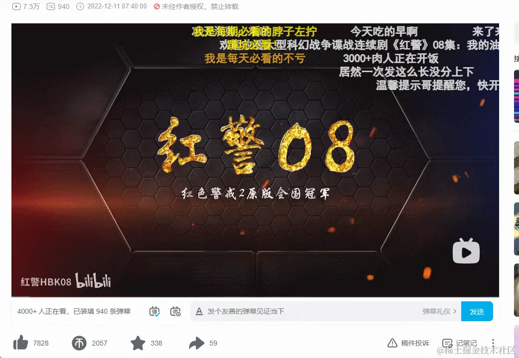 经常玩B站的同学一定知道,登录B站的情况下,长按视频的点赞按钮,会出现一键三连特效。如下图: