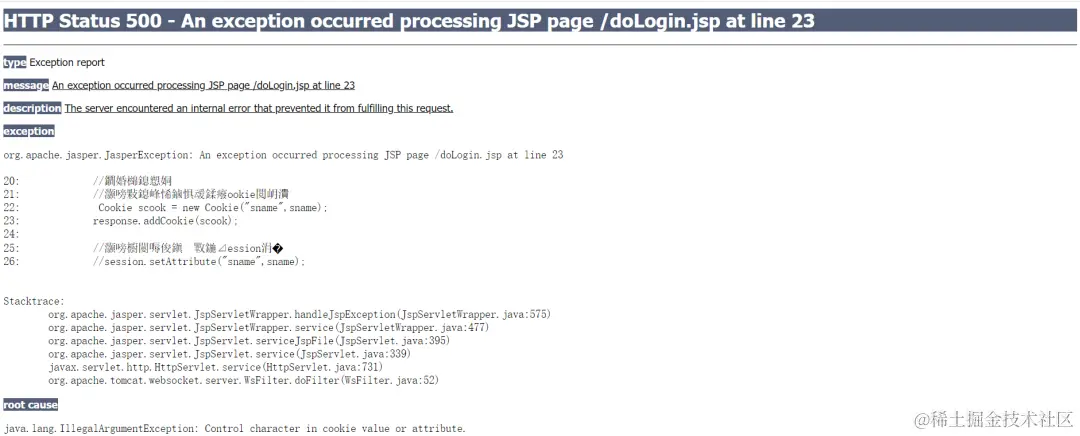 ava.lang.IllegalArgumentException: Control character in cookie value or attribute.