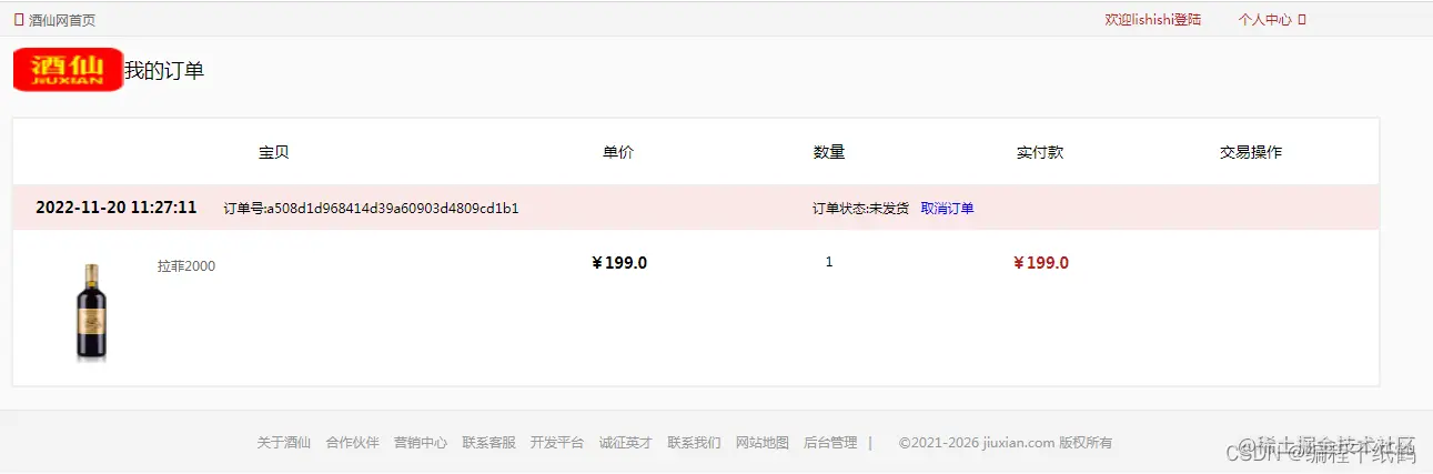 下单后可个人中心可以查看我的订单,并可以取消订单