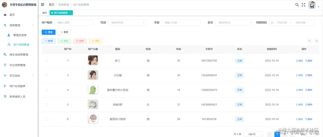 (2) 管理员对用户信息进行管理,可以停用/启用、新增、删除、条件查询用户,修改用户信息、导出用户信息。