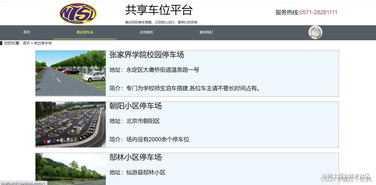 开发本平台的目的就是解决上述诸多问题,用户只需要借助互联网就可以快速获取附近停车场、车位的综合信息,实现快速寻找空闲车位,解决了到达目的地后还需要盲目地寻找停车位置等问题。用户发现车辆或者设施出现故障后,可以在本平台的在线留言一栏进行留言,大大简化了寻找停车场管理员反映故障情况的过程。