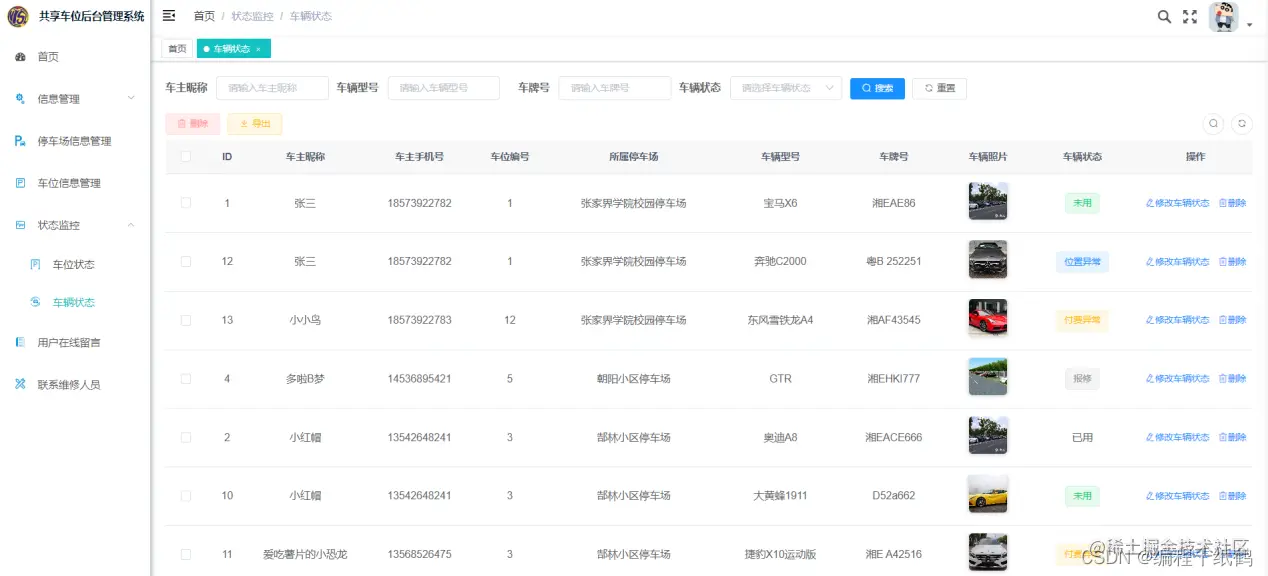 (4) 管理员对停车场车位信息进行管理,可以新增、删除、条件查询车位,修改车位信息。
