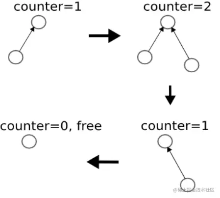 当数据值上的引用计数为0时,就会被垃圾回收机制当做垃圾回收掉 。