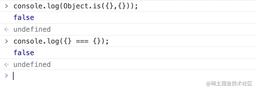 console.log(Object.is({}, {})); // false