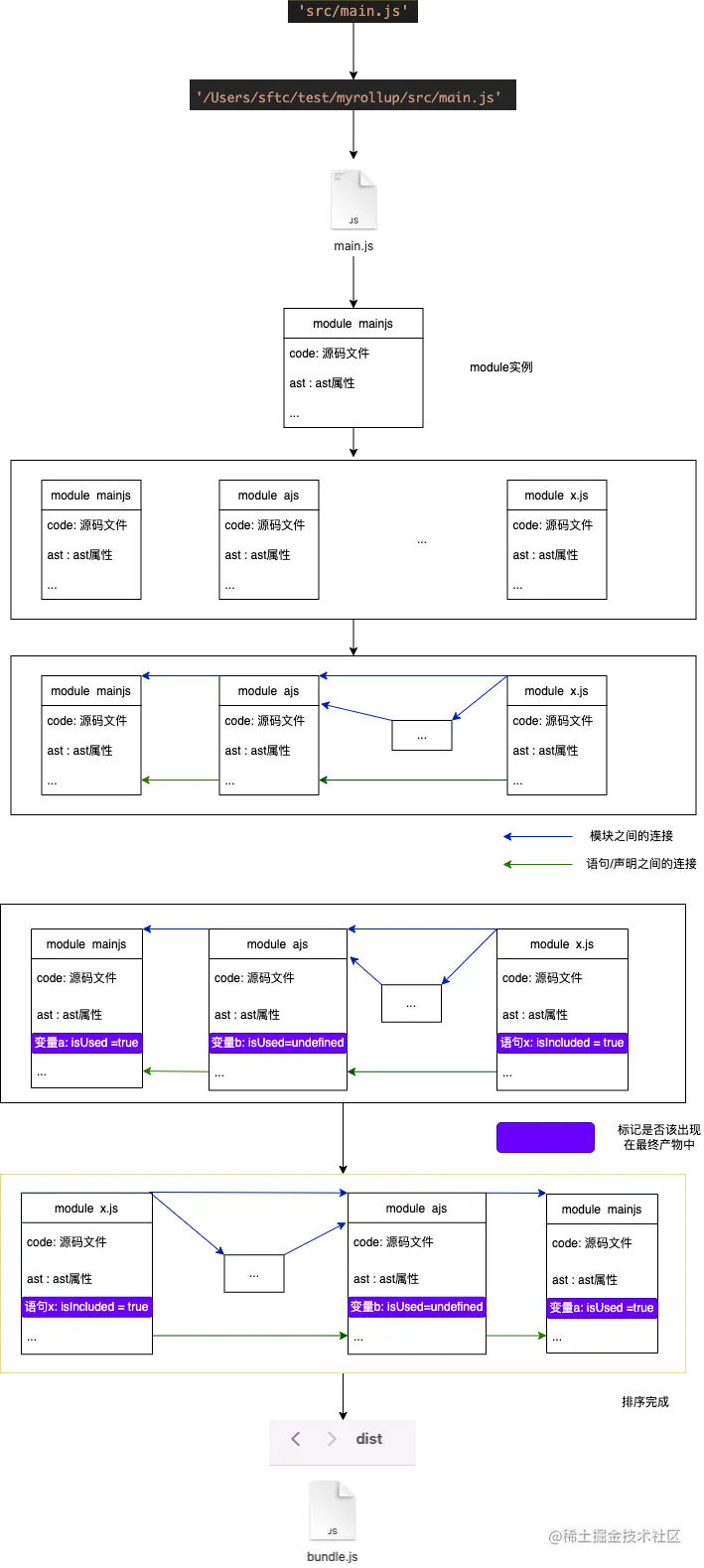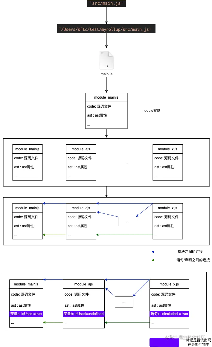 module实例打包进一个文件(过程中只打包被标记的代码,无用代码就去掉了) - 完成 (整个过程就是上图)
