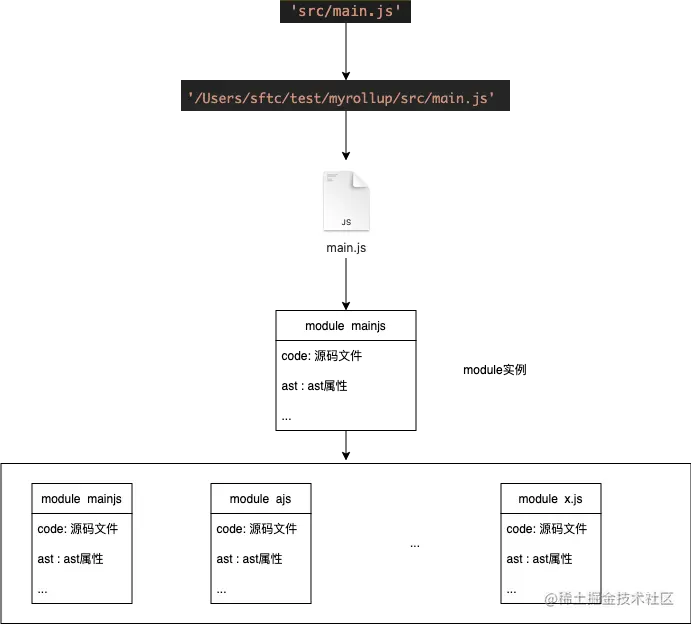 mainjs文件变为一个module实例,不仅仅包含源码,还包含一些ast相关的信息 - 获取