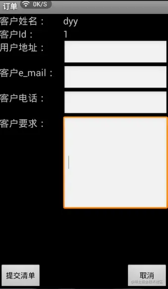 此类为用户填写订购信息的Activity,用来处理订购信息,与用户进行交互,是连接用户和服务器的桥梁