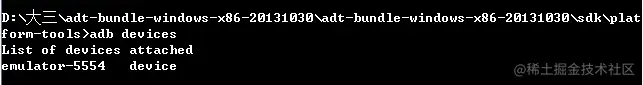 - 进入SDK路径即:在ADT安装中的SDK里的platform-tools处用dos窗口打开