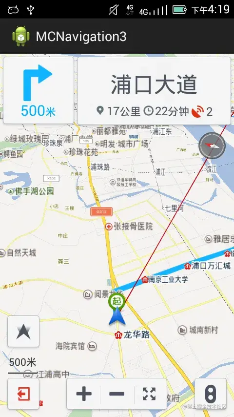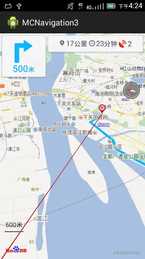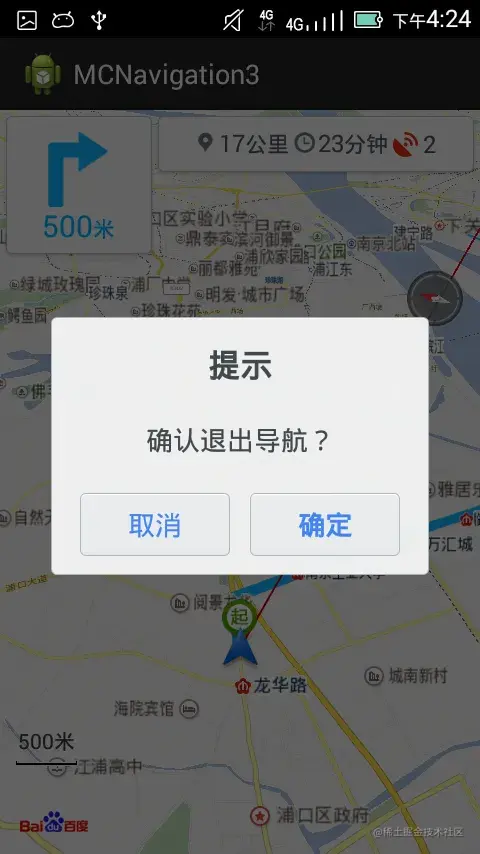 BNavigatorActivity类主要控制地图界面,创建Mapview,导航视图,设置语音播放,以及对导航过程中来电话的处理。