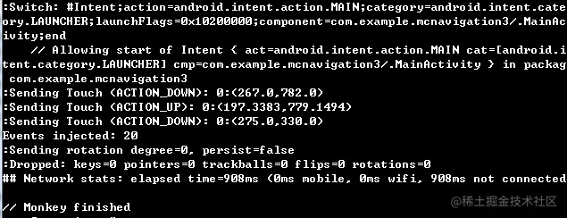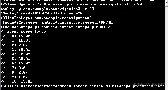 再输入 monkey -p com.example.mcnavigation3 -v 20