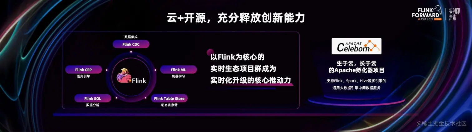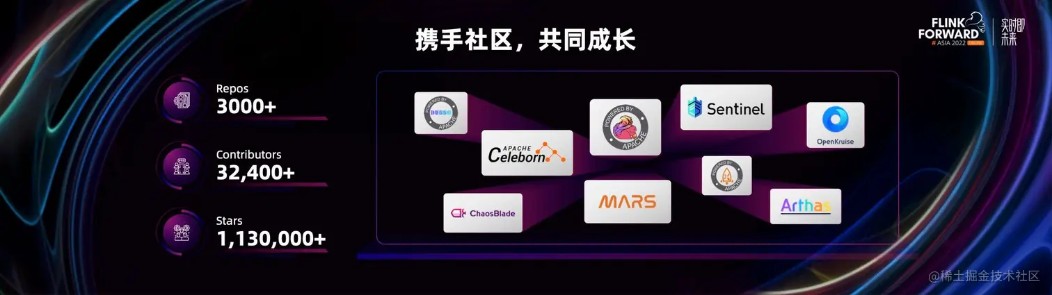 例如在数据集成方向,推动了 Flink CDC 的发展;Flink 和机器学习的结合有一个叫 Flink ML 的项目,也在不断地从 AI 的角度给流计算注入新的活力。同时我们还推出了动态表存储 Flink Table Store。以上这些新的方向,希望能够和社区一起探讨、合作、规划。