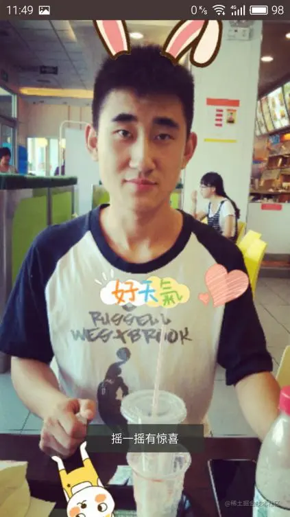 3.通过点击个人头像进入图片编辑界面,显示Toast:”摇一摇有惊喜”,此时可通过手势对图片进行放大缩小