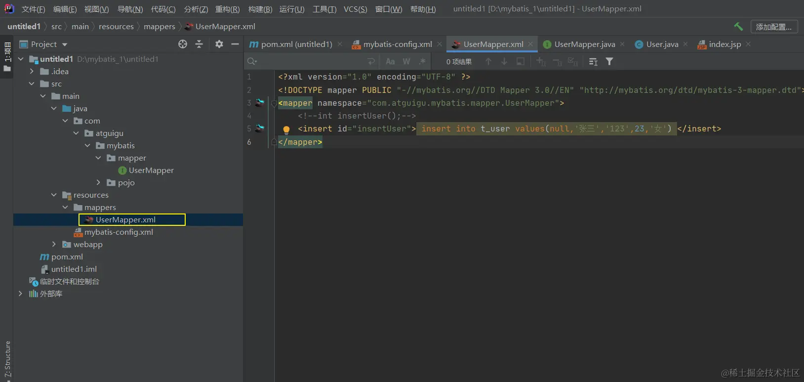 例如:表t_user,映射的实体类为User,所对应的映射文件为UserMapper.xml