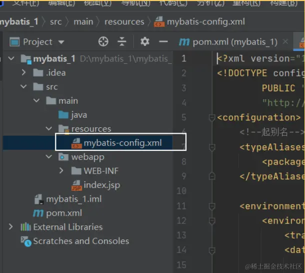 习惯上命名为mybatis-config.xml,这个文件名仅仅只是建议,并非强制要求。将来整合Spring之后,这个配置文件可以省略,所以大家操作时可以直接复制、粘贴。