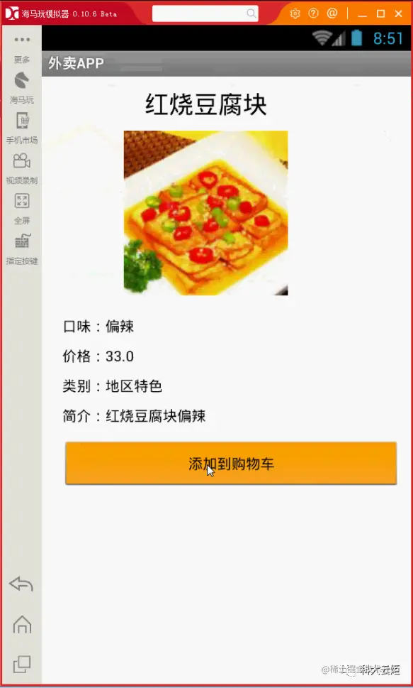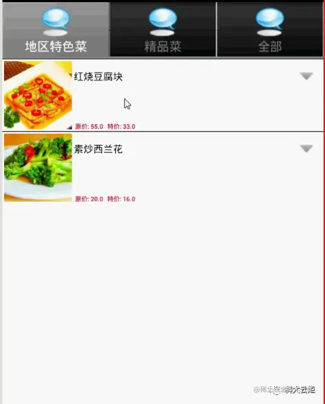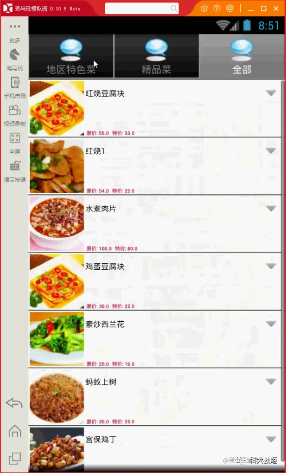登陆后,即来到了外卖App系统菜品信息的显示界面。如下图所示: