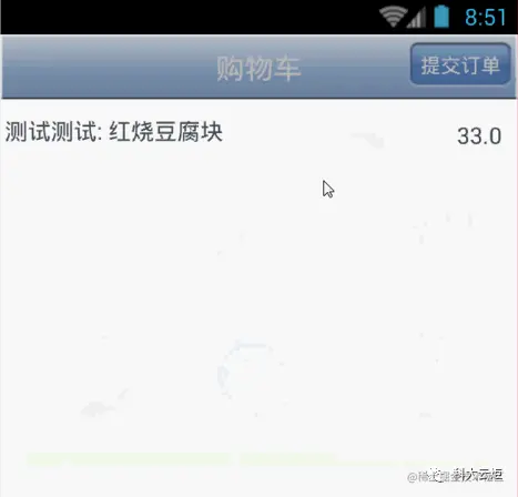 点击“添加到购物车”后,在菜品界面点击menu,点击“购物车”,进入下订单界面。如下图所示: