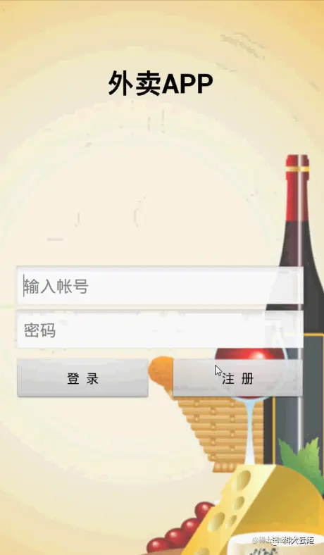 打开应用后,即来到了外卖App系统的登录页面。如下图所示: