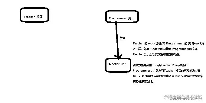 pro.asTeacher().work();//使用内部类来解决接口方法被替换的问题