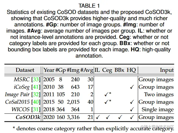 - Although the aforementioned datasets have advanced the CoSOD task to various degrees, they are severely limited in variety, with only dozens of groups. On such small-scale datasets, the scalability of methods cannot be fully evaluated.
