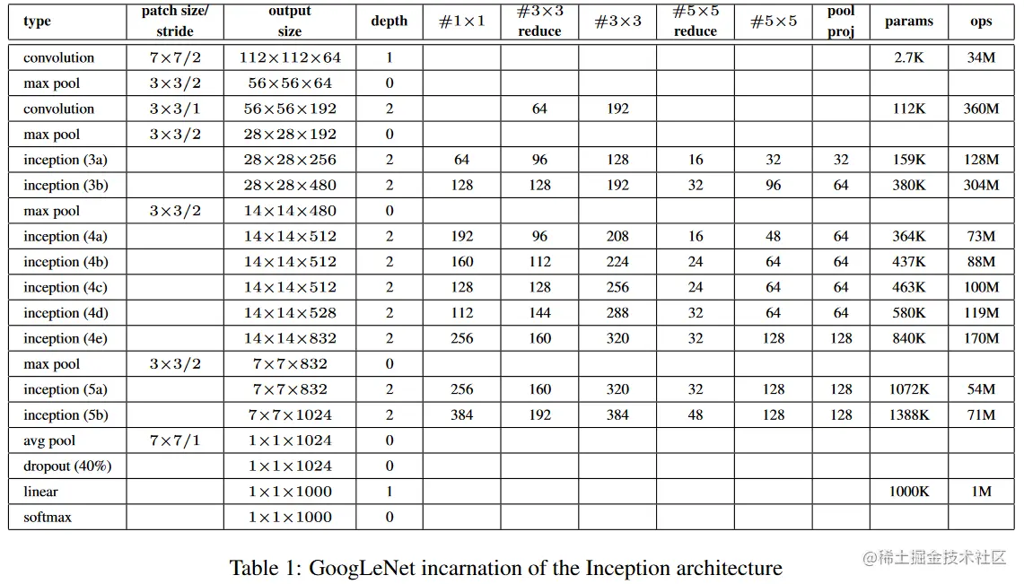 - 一个平均池化层,过滤器大小为5×5,步幅为3,(4a)阶段输出4×4×512, (4d)阶段输出4×4×528。