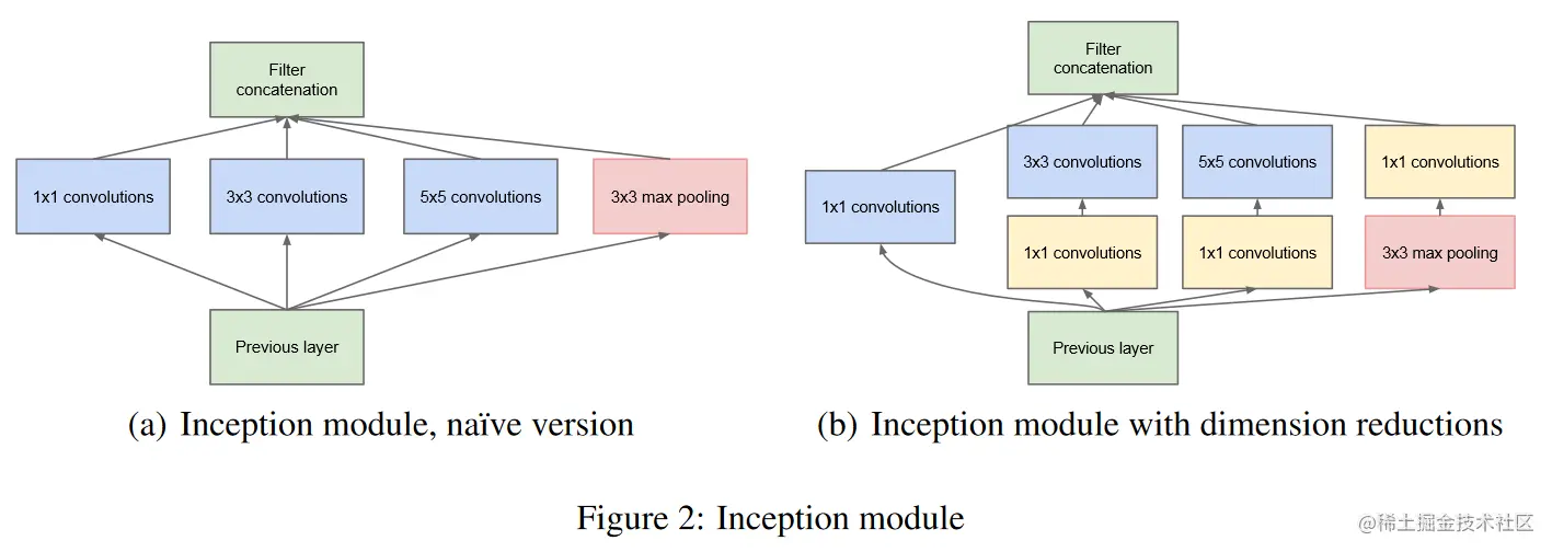 - 使用时,如果输入特征矩阵channels=512,使用24个1×1卷积降维,再使用64个5×5卷积核进行卷积,需要参数:1×1×512×24+5×5×24×64=12288+38400=50688