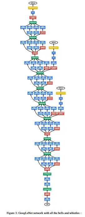 - 添加两个辅助分类器帮助训练(之前都只有一个输出节点,GoogLeNet有三个)