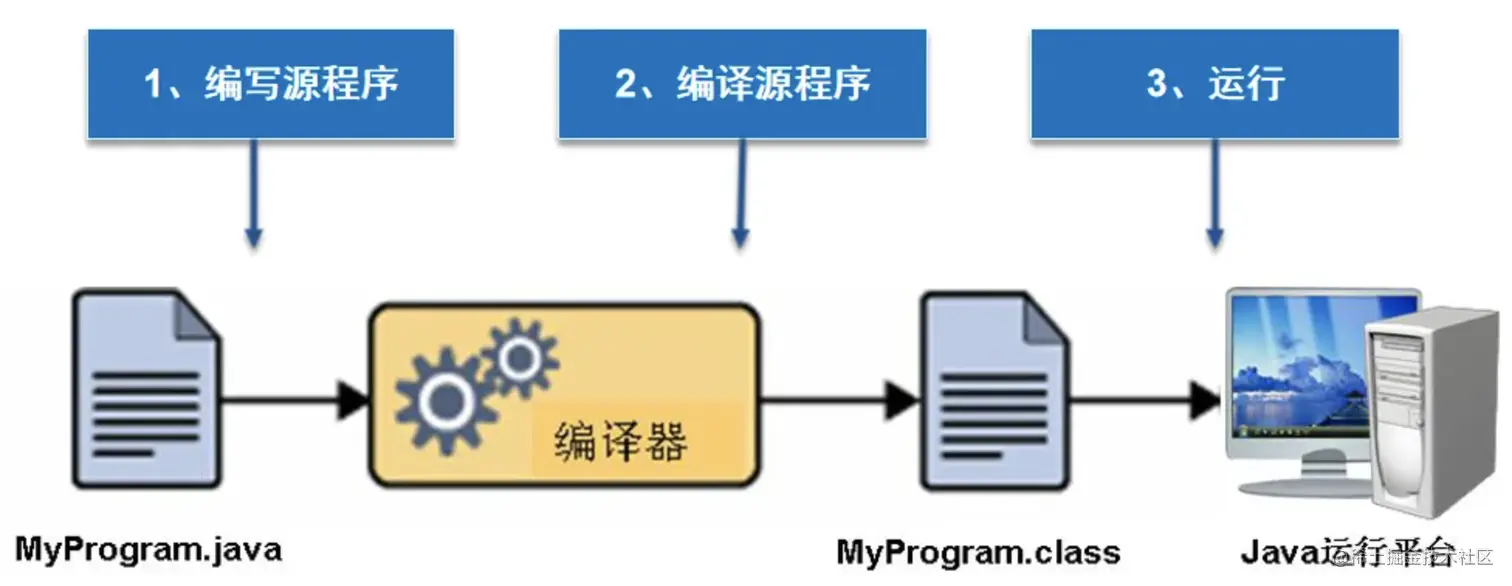 - 编译源程序: 这一步是Java编译器对.java文件进行编译,生成后缀为.class的字节码文件。 大家注意,这里生成的.class字节码文件,和操作系统也没有关系。