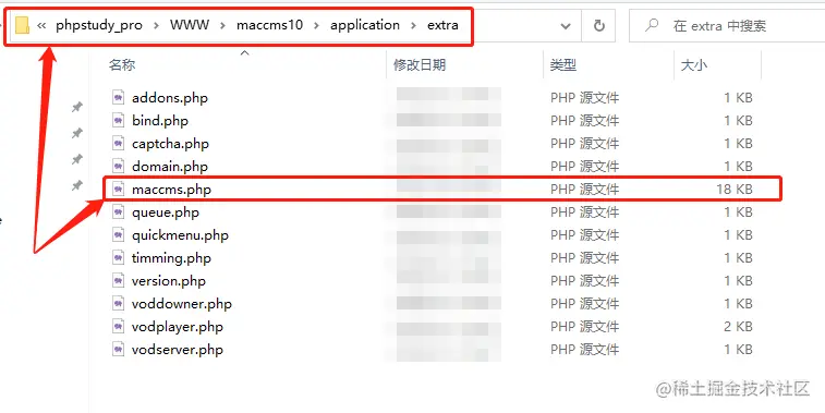 若这种方法仍无法解决登录问题(通常表现为输入正确用户名和密码,页面又跳回登录界面,且用户名和密码清空),则需要更改php.ini的配置。而php.ini则是在MacCMS10使用的php文件夹下。例如笔者使用php7.4.3nts运行MacCMS10,因此php.ini文件就在phpsudy中Extensions文件夹下的php -> php7.4.3nts文件夹里。