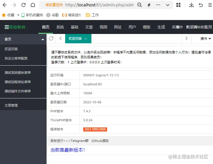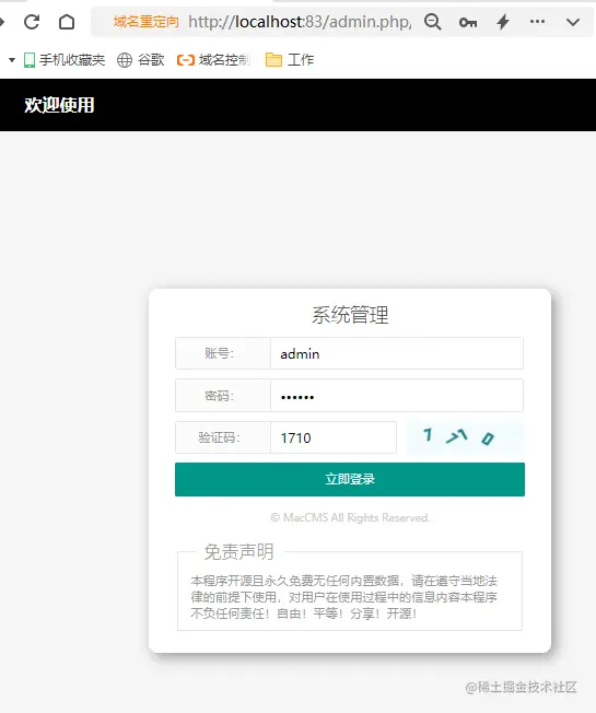 在完成tmp文件夹的修改后,我们重新登录MacCMS10的后台,就会发现已经可以正常登录MacCMS10的后台界面。