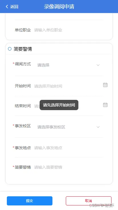 toast('请先选择开始时间')