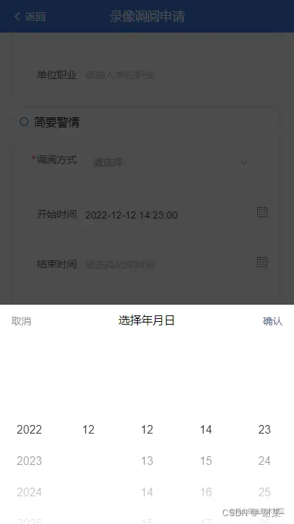上次分享了element plus 的时间选择组件的交互,这次分享一下Vant组件库的做法。需求是差不多的:1.选择的结束时间要在开始时间之后,用户不选择开始时间之前不能让他选择结束时间。废话不多说,上代码: