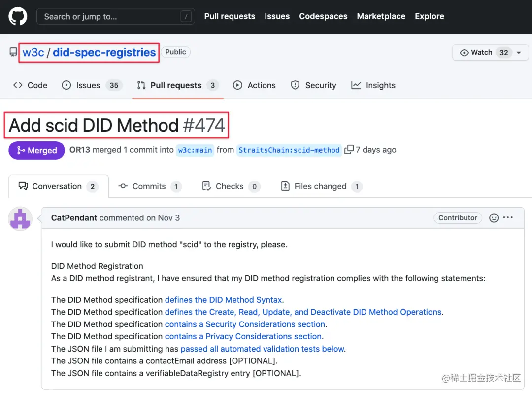 (图2:scid DID Method被添加到W3C的did-spec-registries代码库)