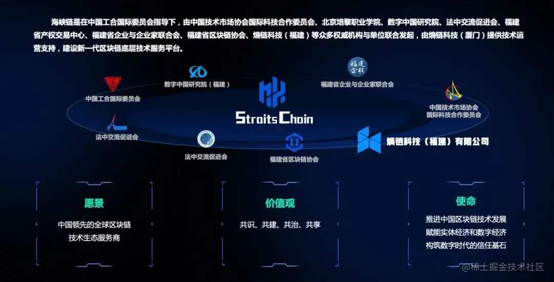 “海峡链” 是全国首创为加强和推进海峡两岸及全球经贸文化交流,服务于全球企业和开发者的区块链底层基础设施,由中国工合国际委员会指导建设并携手中国技术市场协会国际科技合作委员会、北京培黎职业学院、法中交流促进会、福建省区块链协会等众多权威机构与单位联合发起,由熵链科技(厦门)提供技术运营支持,建设新一代区块链底层技术服务平台。