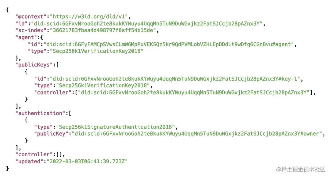(图4:SCID的DID document示例,图片来源:github.com/StraitsChai…