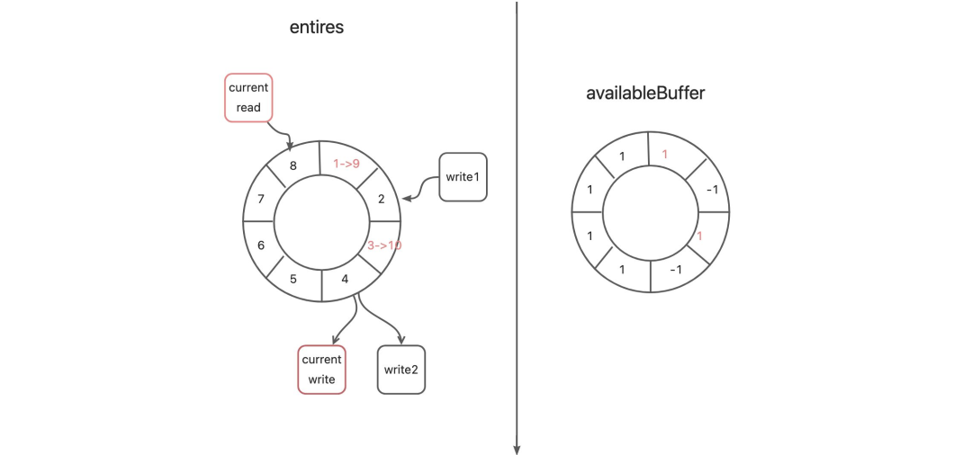 // 从current read下标开始, 循环至 current write,如果碰到availableBuffer 为-1 直接返回
