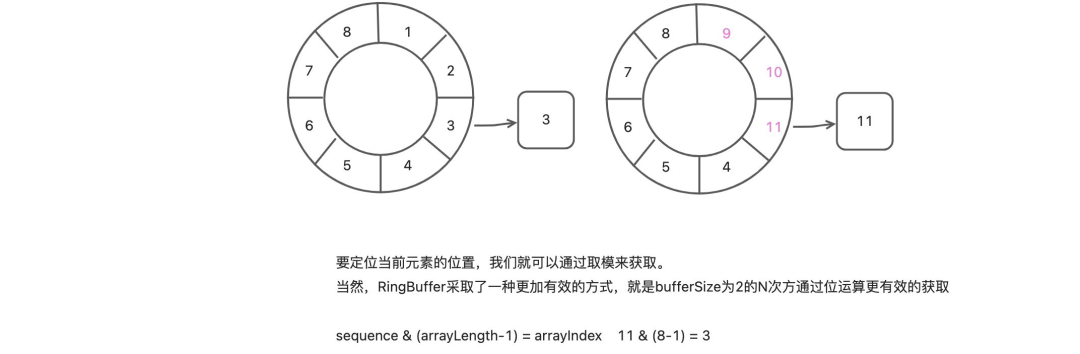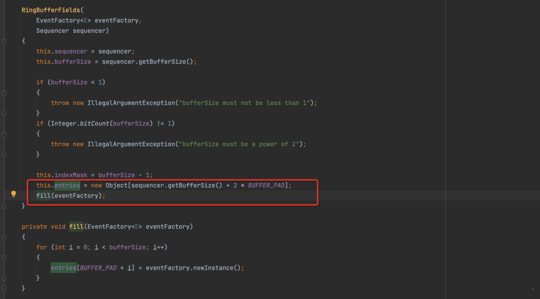 RingBuffer: 环形数组,底层使用数组entries,在初始化时填充数组,避免不断新建对象带来的开销。后续只会对entries做更新操作