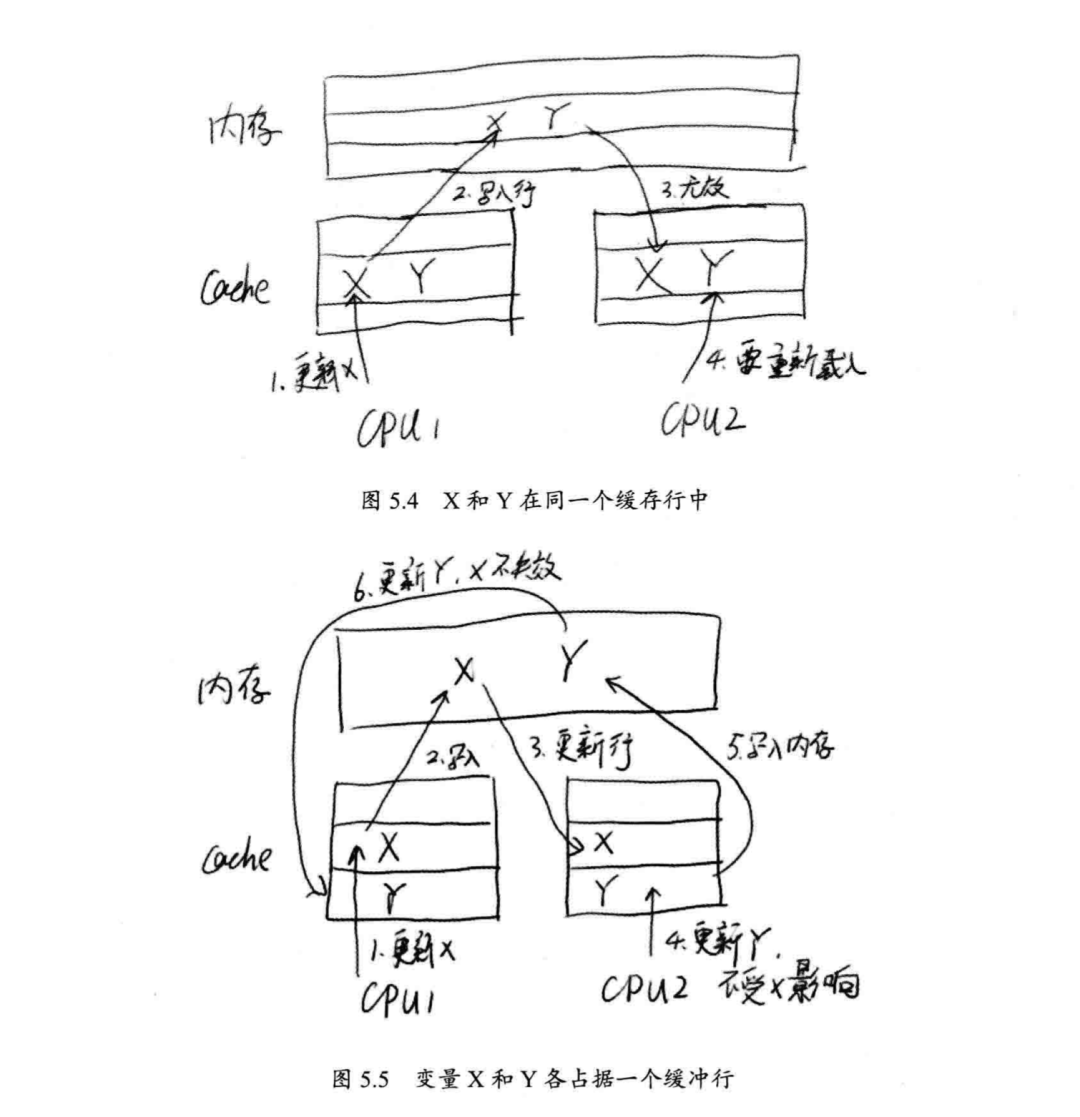 伪共享问题是指,当多个线程共享某份数据时,线程1可能拉到线程2的数据在其cache line中,此时线程1修改数据,线程2取其数据时就要重新从内存中拉取,两个线程互相影响,导致数据虽然在cache line中,每次却要去内存中拉取。