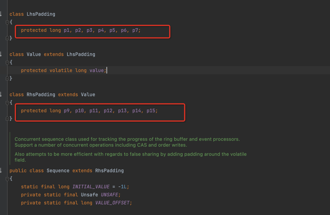 Sequence: 本身就是一个序号器用来标识处理进度,也可以当做是一个atomicInteger; 还有另外一个特点,为了解决伪共享问题而引入的:缓存行填充。这个在后面介绍。