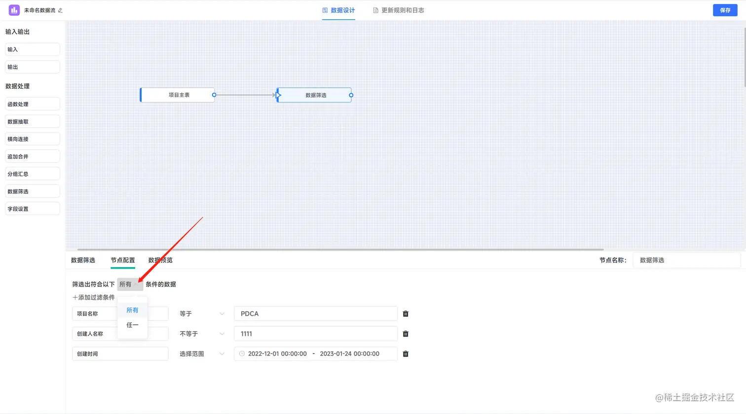 数据筛选节点